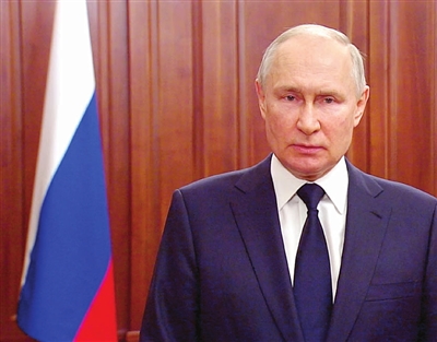 6月26日俄罗斯总统普京在首都莫斯科发表讲话的视频截图。新华社发