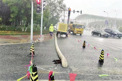 我市启动中心城区防汛Ⅳ级应急响应,千余名排水职工全力排除沥水。