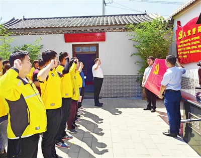 昨日,在位于北辰区双口镇中河头村的天津市第一个农村党支部──中共西北乡农民支部旧址,举办了一场新就业群体新发展党员入党宣誓活动。