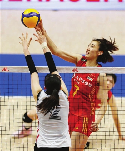 本报讯(记者 梁斌)昨天,在2023年世界女排联赛韩国水原站的第三场比赛中,网口占优的中国女排稳扎稳打,3:1战胜东道主韩国女排,以7胜4负积22分的成绩提前一轮晋级总决赛,4局比分为25:13、25:21、21:25和25:15。今日16时30分,中国队迎战东京奥运会冠军美国队。