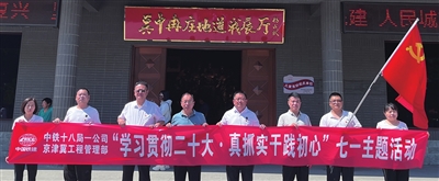 近日,中铁十八局一公司京津冀工程管理部党员、预备党员、入党积极分子在河北冉庄地道战纪念馆开展“学习贯彻二十大·真抓实干践初心”“七一”主题活动,通过重温入党誓词、重走地道战遗址,接受爱国主义教育,汲取前行力量,助力企业高质量发展。(何茂赟)