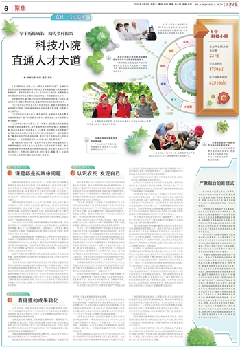 赵飞提到的“科技小院”,是新时代农业科研、科技服务与人才培养有机融合,助推农业产业发展和乡村振兴的有效模式。他作为首席专家的天津宝坻区小站稻科技小院,是天津农学院六个科技小院之一。今年4月,该校贝类、对虾、蛋鸡、葡萄、萝卜、小站稻六个科技小院获得中国农技协科技小院称号。