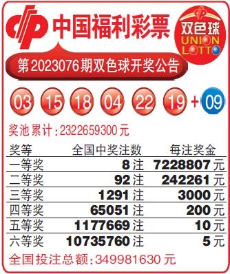 中国福利彩票第2023076期双色球开奖公告