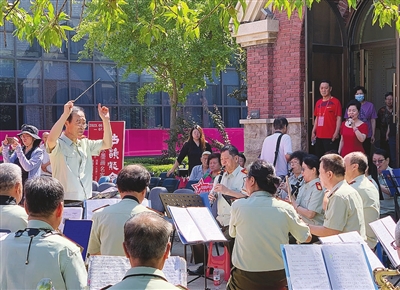 桃园街照耀里社区和谐管乐团为党庆生。 金志成 摄