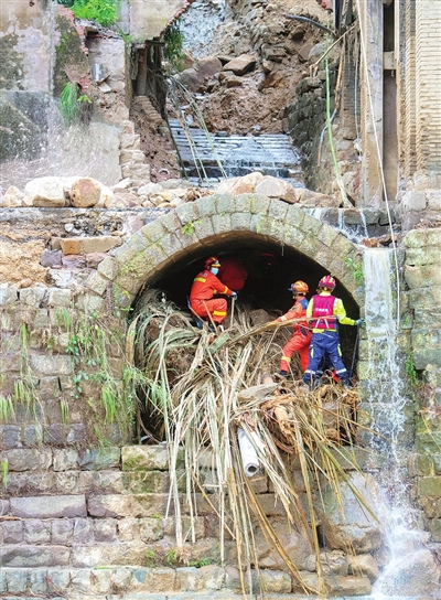 7月6日,在重庆市万州区长滩镇林场村,搜救人员在开展搜救。 新华社发