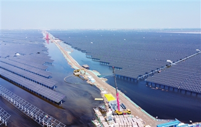 世界单体最大的“盐光互补”项目──华电天津海晶100万千瓦“盐光互补”光伏项目近日正式并网发电。 本报记者 赵建伟 摄
