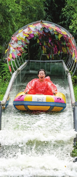 7月8日,游客在安徽省肥东县桥头集镇蓝山湾景区体验滑漂。新华社发
