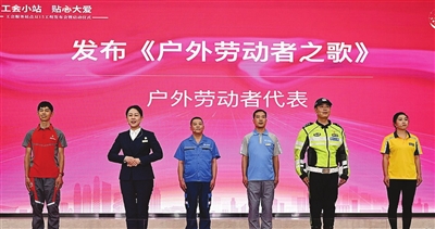 7月10日,全国总工会在北京举行“工会小站 贴心大爱”工会服务站点双15工程发布会暨启动仪式,明确提出努力实现2023年底全国服务站点达到15万个,在全国主要城市和城市重点区域基本实现服务站点15分钟服务圈交叉覆盖的工作目标。截至目前,各类服务站点已建成12.17万个。当日,户外劳动者代表在启动仪式上演唱《户外劳动者之歌》。 新华社发