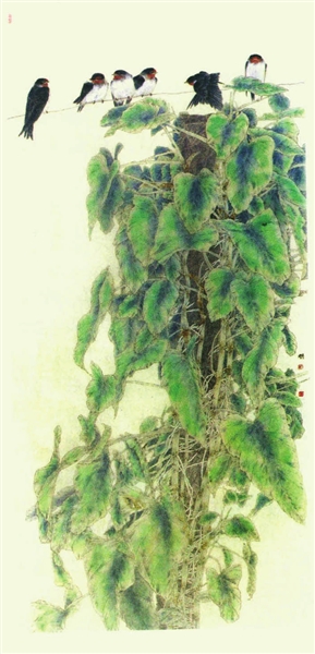 迎风寄语燕一行(中国画)