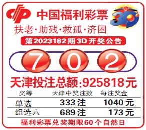 中国福利彩票第2023182期3D开奖公告
