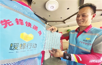 昨日,我市快递行业党委会同快递协会为全市3500名一线快递员发放了清凉马甲。该清凉马甲背部嵌入可拆卸式创新性柔性冷媒──冰利膜,从背部最易接受降温的位置缓缓释放冷能,使穿着者在高温户外作业也能感受清凉。
