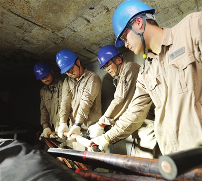 日前,国网天津电缆公司员工在梅江道地区电缆工井内进行电缆终端更换,及时消除设备隐患,经受高温大负荷考验。