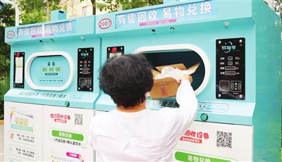 近日,东丽区万新街道组织志愿者在东城家园社区开展垃圾分类宣传活动。现场,志愿者为社区居民演示垃圾分类智能回收机的使用方法,居民扫码关注领取智能卡后可以把废品“换”成卡里的“碳币”,用来兑换直饮水。