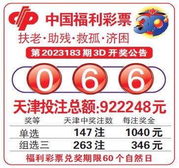 中国福利彩票第2023183期3D开奖公告