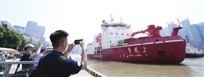 图为:人们在拍摄“雪龙2”号。新华社发