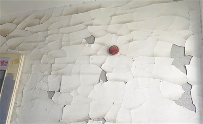 鲁先生2018年购买红桥区民畅园小区的房子,入住不久就发现楼道围墙起鼓,近年来面积越来越大,墙皮大片脱落。小区路面是石砖铺设的,年久失修,如今也是坑坑洼洼,一下雨就积水,“小区有物业管理,我们一直按时交纳物业费,可这些问题都没人来维修。”