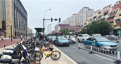 日前,多名市民向本报热线23602777反映,每次骑行到鲁能城西南门的时候,通行困难重重,非机动车道无法通行,只能借助机动车道驶过。