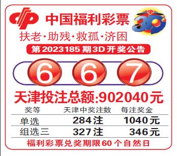 中国福利彩票第2023185期3D开奖公告