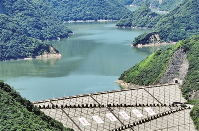 这是黑河金盆水库(7月16日摄,无人机照片)。引汉济渭工程引来的汉江水将通过黑河金盆水库西安供水管线向西安先期供水。 新华社发
