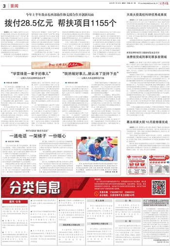 本报讯(记者 王睿)记者昨日从市合作交流办获悉,今年以来,我市将深化东西部协作和支援合作纳入全市“十项行动”,聚焦重点领域,多举措促成产业合作,夯实民生保障,增进民族团结,东西部协作和支援合作开创了新局面。上半年,我市拨付东西部协作和支援合作财政资金28.5亿元,实施帮扶项目1155个;帮助结对地区农村劳动力新增就业3.1万人,实现消费帮扶16.5亿元,募集社会动员帮扶款物合计2.03亿元,民族团结结对认亲达469对。