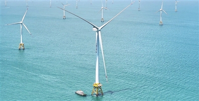 7月19日,16兆瓦超大容量海上风电机组在三峡集团福建海上风电场成功并网发电,标志着我国海上风电大容量机组研发制造及运营能力再上新台阶。这是在三峡集团福建海上风电场成功并网发电的16兆瓦超大容量海上风电机组(无人机照片,7月19日摄)。 新华社发