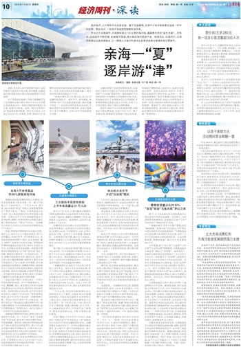 每年4月至10月,天津东疆湾沙滩景区(简称东疆湾景区)会迎来络绎不绝的游客。人们或下海游泳,或躺在沙滩躺椅上休息,或体验水上运动项目。每到周末,这里的日客流量达1万余人次。