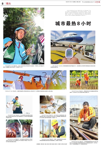 7月11日我市正式入伏。“是时三伏天,天气热如汤。”“伏天”代表着一年中最热的季节,而今年感受尤为明显。为了躲避暑热,人们躲开日间高温时段,尽量减少出行,避免不必要的劳动。但总有一些人,为城市的正常运转,为人们的正常生活在烈日下坚守,经受着全天最热的8小时“烤”验……