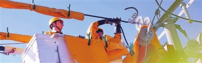7月6日上午11点,气温38℃。国网天津城西公司配电带电作业人员在烈日下,为西青区王稳庄镇农业发展中心搭火送电。