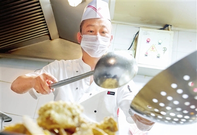 7月5日下午3点,气温37℃。位于河东区上杭路街道老人家食堂后厨,满头大汗的凌永宏正在为老年人准备晚餐,最高温能达到60℃的后厨,他和同事在里面一忙就是一天。