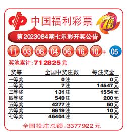 中国福利彩票第2023084期七乐彩开奖公告