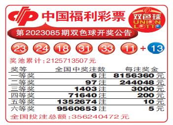 中国福利彩票第2023085期双色球开奖公告