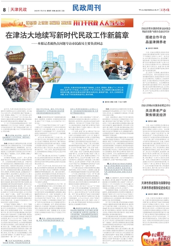 近年来,天津市民政系统坚持以习近平新时代中国特色社会主义思想为指导, 深入践行以人民为中心的发展思想,锚定“强基础、上位次、更精准、更暖心”十二字工作目标,运用“开门干民政、人人当专家”十字工作方法,用心用情用力解决好群众急难愁盼问题,推动民政事业发展不断迈出新步伐、展现新气象。