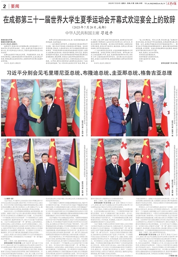 新华社成都7月28日电(记者 袁帅 周相吉)7月28日上午,国家主席习近平在成都会见来华出席第31届世界大学生夏季运动会开幕式并访华的圭亚那总统阿里。