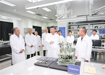 7月25日至27日,中共中央总书记、国家主席、中央军委主席习近平在四川考察。这是26日下午,习近平在位于德阳市广汉市的三星堆博物馆文物保护与修复馆,同现场工作人员亲切交流。 新华社记者 谢环驰 摄