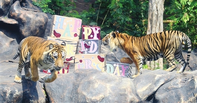 7月29日是“全球老虎日”。当日,在印度尼西亚玛琅的一所动物园,工作人员为苏门答腊虎准备了写有“全球老虎日快乐”字样的“礼物”。