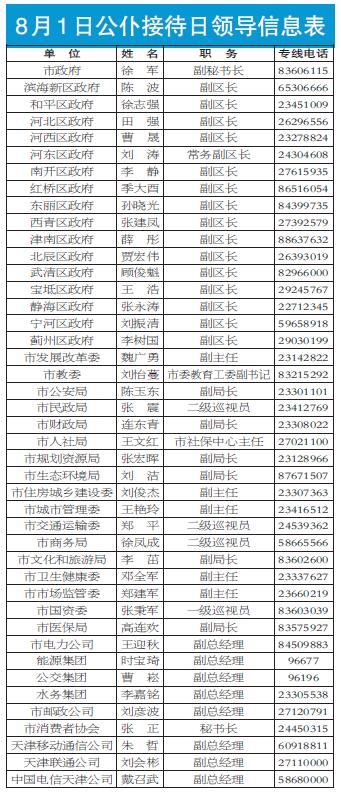 本报讯(记者 高立红)8月1日是公仆接待日,当天9:00—11:30,全市43个单位的负责同志将在各自单位接听热线电话,为市民解释相关政策、解答疑难问题。