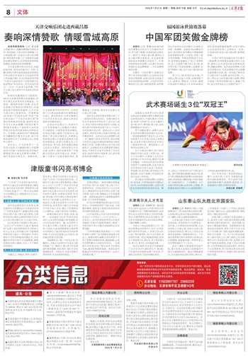 在最后一天的比赛中,徐嘉余在男子50米仰泳决赛中,以24秒50历史性地夺得铜牌,此前从没有中国选手在该项目获得过奖牌。已经在本次比赛获得2金1银1铜的张雨霏,在昨晚的女子50米自由泳决赛中,以24秒15再获一枚铜牌。此前的100米蝶泳夺金后,张雨霏在50米蝶泳中紧随瑞典名将舍斯特伦第二个到边,收获一枚宝贵的银牌。昨晚泳姿换成了自由泳,张雨霏还是输给了“铁人”舍斯特伦,加上之前两个接力的1金1铜,张雨霏实现了本届世锦赛上金银铜“全色”奖牌的入账,总计2金1银2铜5块奖牌。