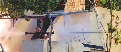 图为一名武装人员发射火箭弹。