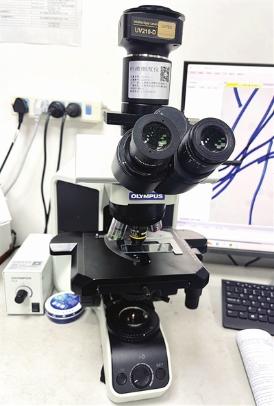 傅女士决定请权威机构验证。她把两件衣服都送到了天津市产品质量监督检测技术研究院纺织纤维检验中心(以下简称纤检中心)。在纤维细度仪500倍的显微镜下,两件衬衣的纤维终于现了原形:均为平滑规则的聚酯纤维和氨纶的形态,与真正桑蚕丝的那种不规则的纤维直径及形态大相径庭。