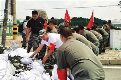 技术设备“硬”,前进指挥所的人力储备也没得说。北辰区退役军人事务局组织的退役老兵志愿者、区住房城乡建设委组织的人员已经在点位枕戈待旦。距离指挥车不远,民兵们正在修建封堵沙袋墙,以防出现险情。