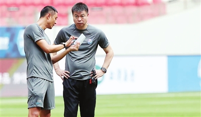 本报讯(记者 顾颖 摄影 刘欣)今天19:35,天津津门虎队在中超联赛第20轮比赛中,客场迎战目前在积分榜上排在首位的上海海港队。昨天下午,津门虎队新引进的保加利亚外援维塔诺夫,与主教练于根伟一起参加了赛前新闻发布会,经过一段时间的调整,再加上球队目前缺兵少将的现状,主客观原因都推动维塔诺夫今天要参与更长时间的比赛,负起更多的责任。