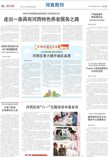 近年来,河西区养老工作体系全面建立,养老服务网络全面覆盖,为老服务项目全面铺开,智慧养老探索全面深化,敬老爱老氛围全面浓厚,市场发展机制全面运转,逐步走出了一条具有河西特色,可持续、可复制、可推广的养老服务之路。