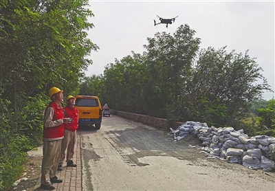 “这些跨河的线杆是重点巡查对象。泛区内草木茂密,我们又无法进入,只能通过无人机排查安全隐患。”赵鑫告诉记者。作为党员突击队的一员,这些天他们和同事们一直奋战在为防洪提供电力保障的一线。城东公司组建共产党员突击队,全方位排查治理洪区电力设施、低洼地变电站等输变设备风险隐患。输电线路多数建设在郊外,架设区域相对分散,使得输电共产党员突击队队员要驱车几十公里才能到达巡视地点,河堤上草木丛生,蚊虫“凶猛”,大家三伏天也是长衣长裤,这对巡线人员耐力和体力是不小的考验。“我们两个小时巡线一次,必要时保持24小时巡查。”青光供电服务中心副主任杨智说。