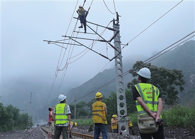 8月3日,中铁十二局集团电气化公司驰援丰沙铁路进行线路检修作业。 通讯员 李洪涛