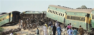 巴基斯坦官员6日晚说,巴南部信德省当天中午发生的客运列车脱轨事故已导致30人死亡、90余人受伤,目前现场搜救工作已告一段落。这是8月6日在巴基斯坦南部信德省桑克尔地区拍摄的列车脱轨事故现场。