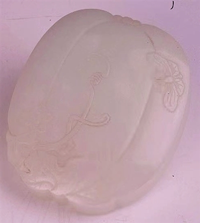 天博馆藏清代瓜瓞绵延纹白玉盒,盒近椭圆形,盖面雕刻瓜叶及飞碟纹。中国古代工艺品无论是绘制的平面纹饰,还是雕琢的立体图案,都遵循“有图必有意,有意必吉祥”的规律,反映了我国古代劳动人民的无穷智慧与对美好生活的向往。瓜蝶纹取自“瓜瓞”的谐音,《诗经·大雅·绵》云:“绵绵瓜瓞,民之初生,自土沮漆。”唐代经学家孔颖达疏:“瓜之族类本有二种,大者曰瓜,小者曰瓞。”“瓞”与“蝶”谐音,“瓜蝶”即是“瓜瓞”。天博器物研究部副主任李君说:“瓜蝶纹象征子孙繁多、寓意家族兴旺,常见于我国古代玉器、瓷器与木器中。”