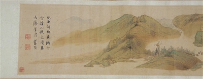 天博馆藏明代蒋嵩的《秋江归棹图》轴,画中远山如黛,江面微微泛波,一叶小舟悠然浮在水面。船夫回头张望,船尾一老者闲适地看书,任凭小舟在水中飘荡。岸上有山石树木,水边有芦苇丛丛,一派秋季的醉人风光。天博书画研究部的李晶介绍:“画面层次感很强,布局优美,远山近水、山石、树木、芦苇搭配得相得益彰。内容丰富,意境简淡,水墨厚重。山石兼皴带染,笔墨滋润。”