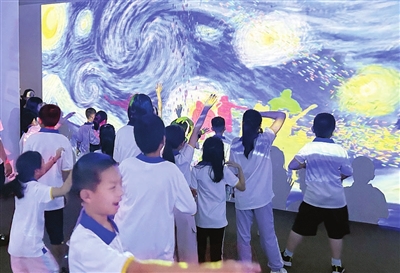 馆内正在展出的全景数字艺术“梵高的世界”展览,带来融色彩、音乐与光影于一体的奇妙体验。孩子们徜徉在2000多平方米的展厅,沉浸式欣赏梵高3000余件经典之作,感受数字艺术的震撼视效。