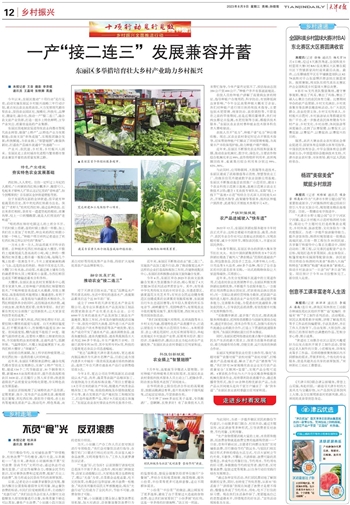 东丽区因地制宜促进传统农业向都市型现代农业转型,做强“土特产”,以特色产业为发展赋能;农商文旅“串珠成链”,实现组团融合发展;科技赋能,为农业插上“智慧翅膀”;做强供销社,打通农产品城乡流通中“快速路”……