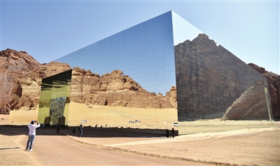 图为2021年11月5日在沙特阿拉伯古城欧拉中拍摄的镜面艺术建筑“迈拉亚”。新华社发
